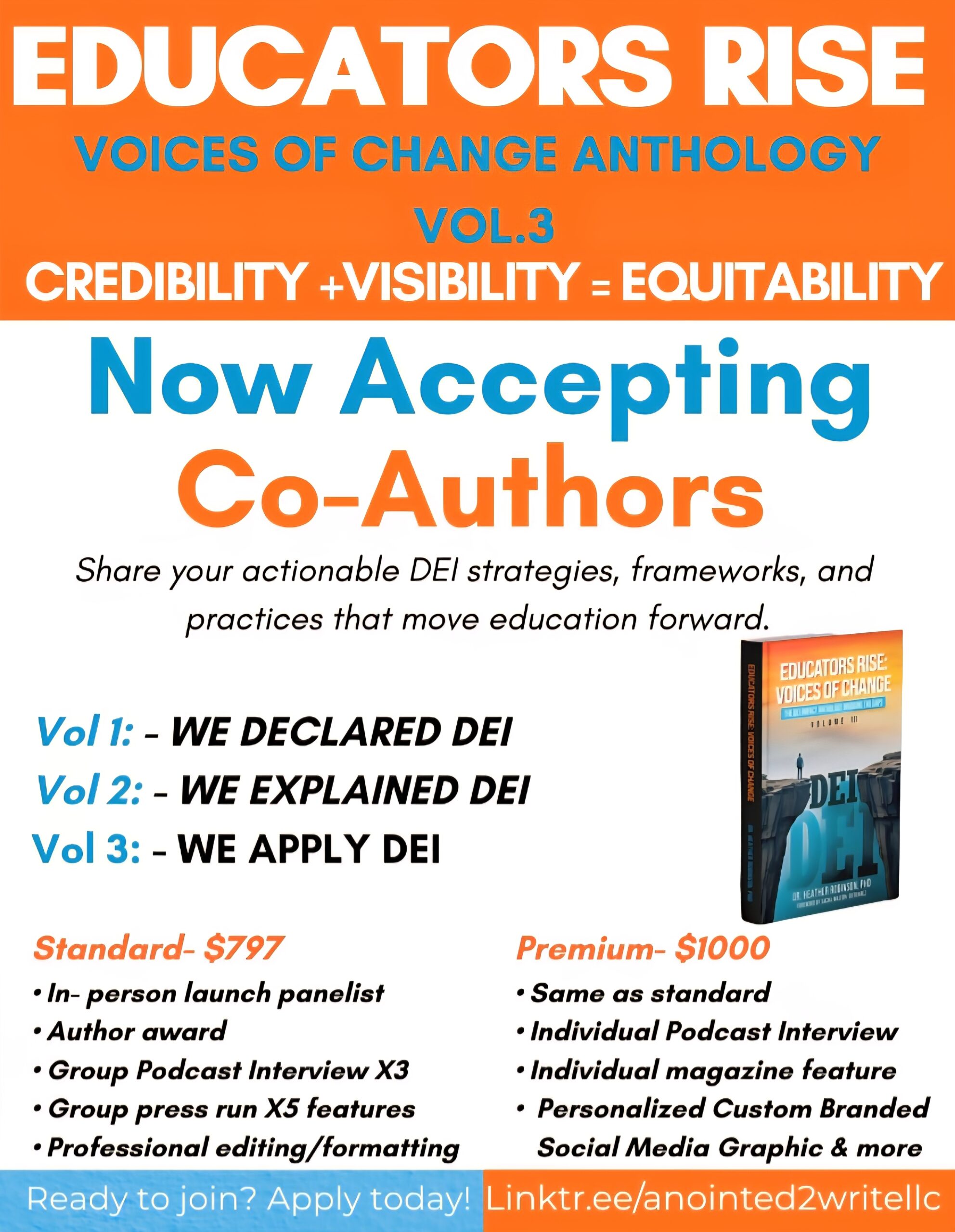 Dr. Heather A. Robinson, a Presidential Lifetime Achievement honoree and 4-time global/international award winning author & educator, brings both academic rigor and lived resilience to the project. An eight-time published author with a Ph.D. in Organizational Educational Leadership, she has become a respected voice in education advocacy and DEI consulting. Guided by her principle, “Visibility + Credibility = Equitability,” Dr. Robinson continues to elevate conversations that demand responsibility and progress within schools, organizations, and communities. Educators Rise: Voices of Change Anthology, Volume II is scheduled for release in Winter 2026, followed by the Educators Rise Conference & Awards Ceremony on July 18, 2026.